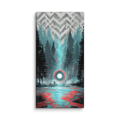 A mesmerizing canvas print of a twilight forest, where shimmering leaves and ghostly light trails weave a tapestry of mystical allure. Printed on 1.25″ thick poly-cotton canvas, hand-stretched over wooden bars with mounting brackets, this fade-resistant piece evokes enchanted serenity in any space. Made on-demand for sustainability, it’s a radiant artistic statement.